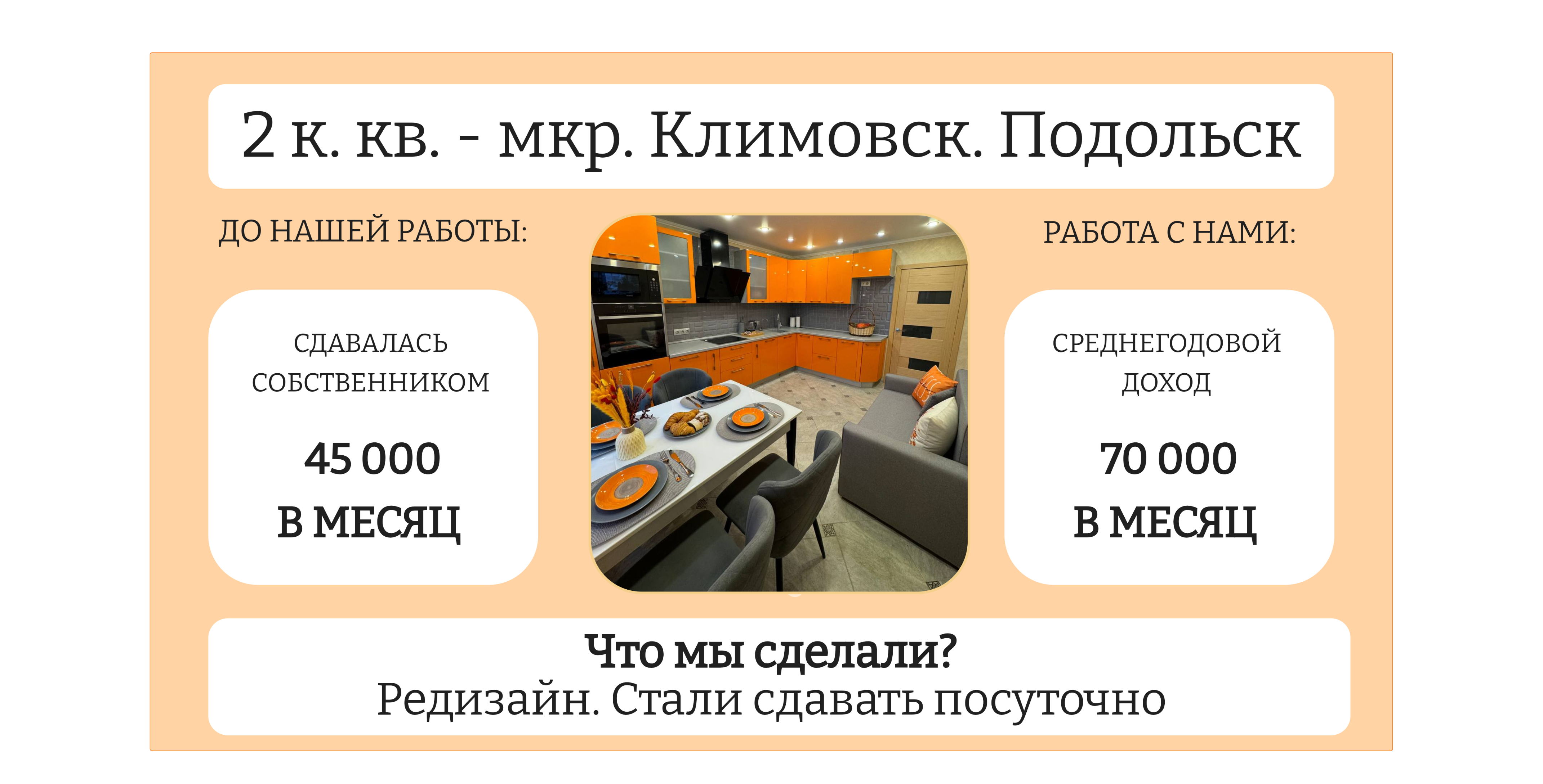 Как правило, собственники при работе с нами зарабатывают на 20-80% больше, чем если сами сдают в долгосрок. При этом заработок полностью пассивный и законный.